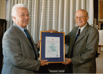 Presidente en Ejercicio de la CMPP Ing. Agr. Ricardo Hahn, recibe la Certificación de manos del Presidente de UNIT, Ing. Blas Melissari |