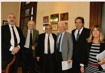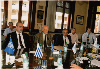 Presidente en Ejercicio de la CMPP, Ing. Ricardo Hahn y el Tesorero de la CMPP Cr. Martín Pérez del Castillo, junto a los Asesores de la CMPP Ing. Agr. Galdós Ugarte y Cra. Ana Cristina Lecueder. |