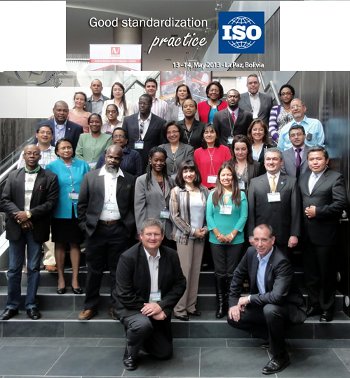 Este Taller Regional sobre Buenas Prácticas de Normalización fue organizado por ISO en la ciudad de La Paz, Bolivia, del 12 al 14 de mayo de 2013. El mismo contó con la participación de 28 representantes de los Organismos de Normalización Nacionales de los países de América del Sur, América Central y el Caribe.