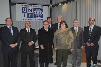 De izquierda a derecha: Lic. Sergio Toro, INN (Chile); Ing. Carlos Amorim, ABNT (Brasil); Sr. Enrique Romero, IRAM (Argentina); Sr. Claudio Ragni, INN (Chile); Ing. Pablo J. Benia, UNIT (Uruguay); Sra. Eliane Rodrigues, Secretaria Ejecutiva AMN; Ing. Osvaldo Petroni, IRAM (Argentina); Ing. Fernando Gómez, UNIT (Uruguay) |